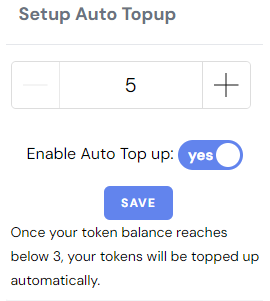 Once your first token purchase is complete, you will see the option to enable auto top-up.